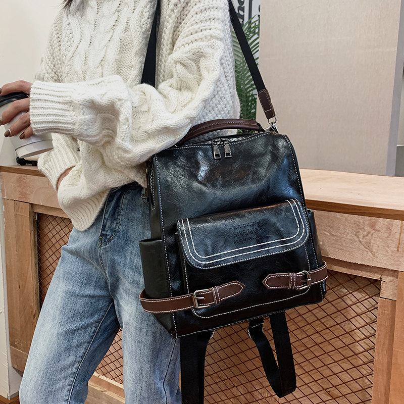 Double Shoulder Bag Female College Student Brief Class Class Fashion 2020 New Tide 100 hitch Han's version of the Leather Shoulder Bag travel