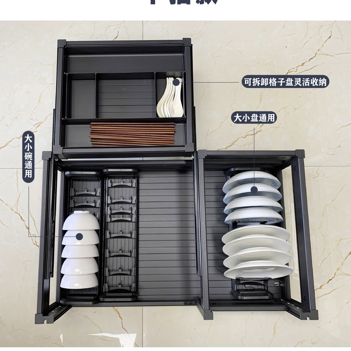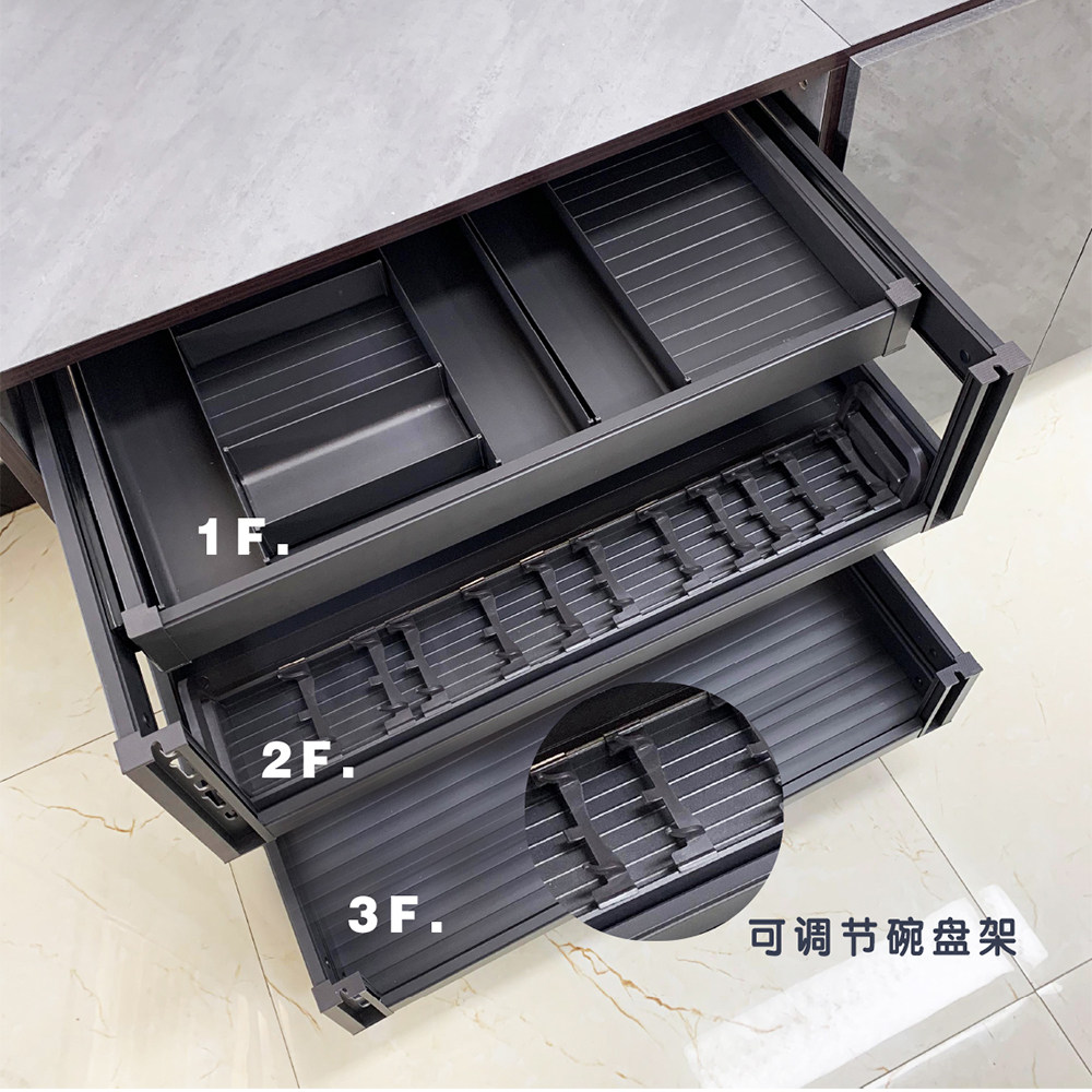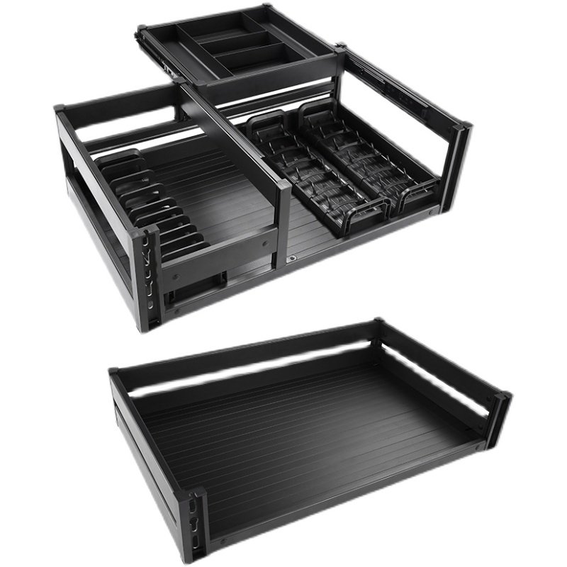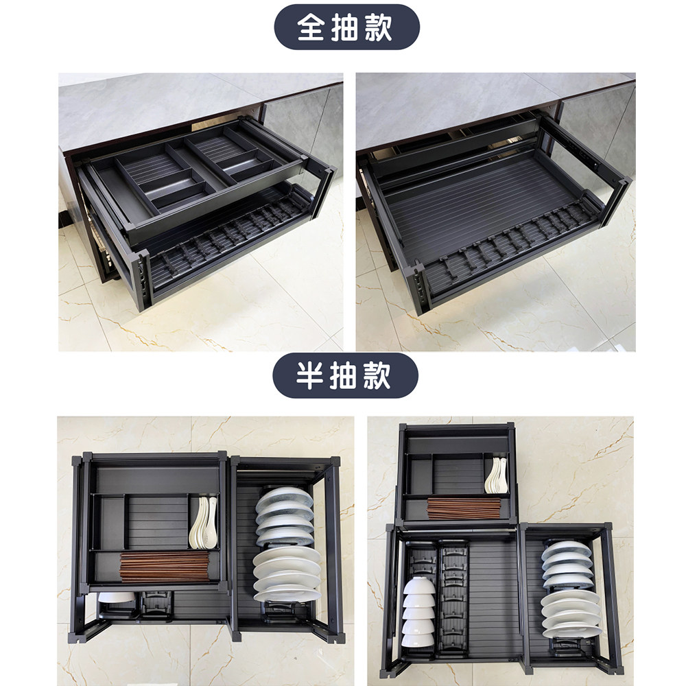Kitchen cabinet pull basket double-layer aluminum alloy pumping storage dish rack Drawer bowl rack Bowl basket tool pull basket