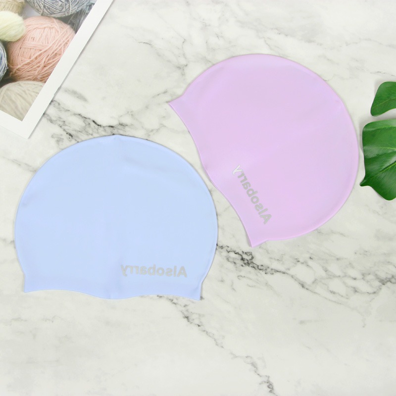Japanese solid color long hair silicone waterproof ear protection swimming cap with enlarged head adult hot spring swimming cap