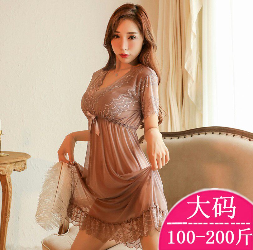 Plus size sexy pajamas summer passion temptation sexy female tulle underwear transparent dress nightdress 200 catties