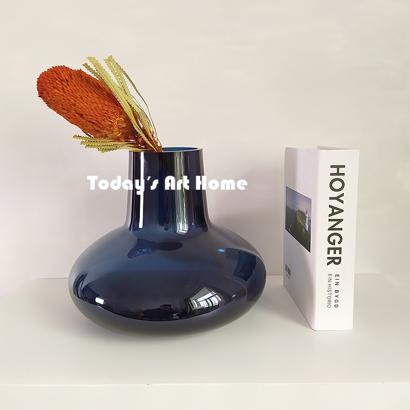 Modern minimal blue vase light luxury Nordic home living room glass flower dining table decoration decoration