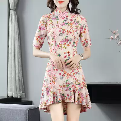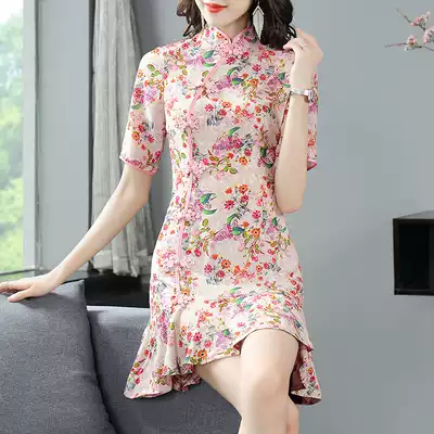 Ancient Chinese cheongsam young 2021 new Chinese style girl sexy French modified fishtail dress summer