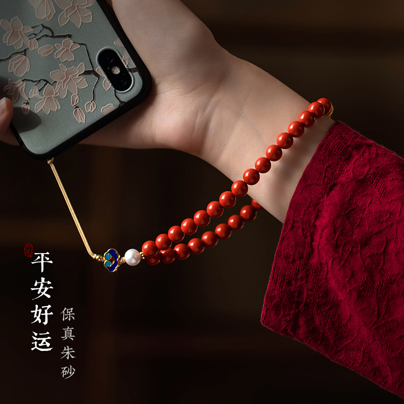 Dashantang fidelity cinnabar mobile phone chain lanyard pendant short short wrist Chinese style personality creative anti-loss rope
