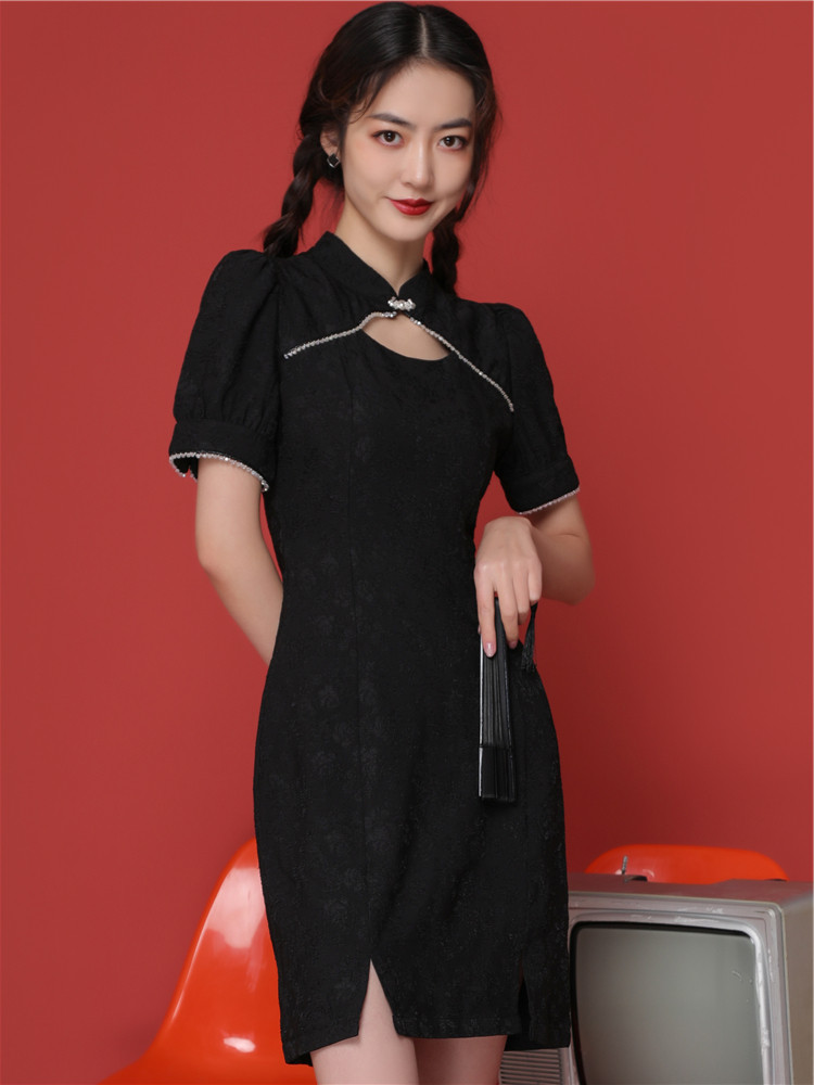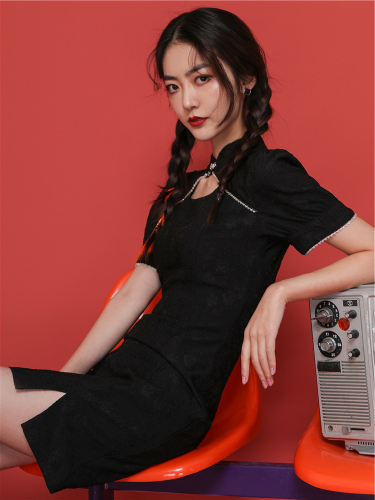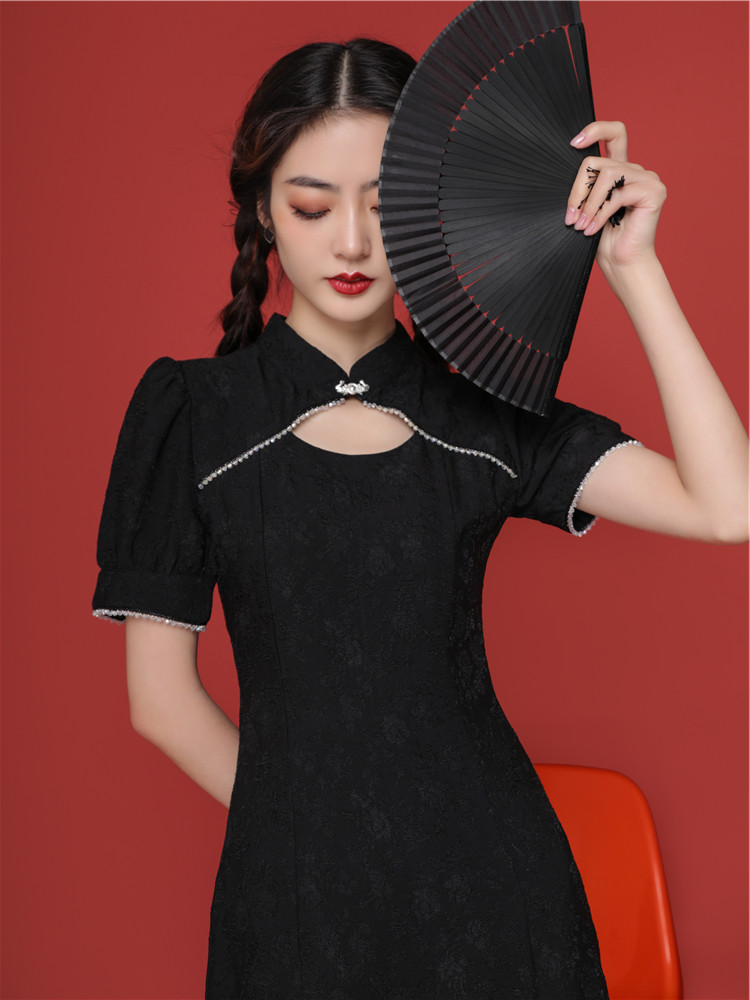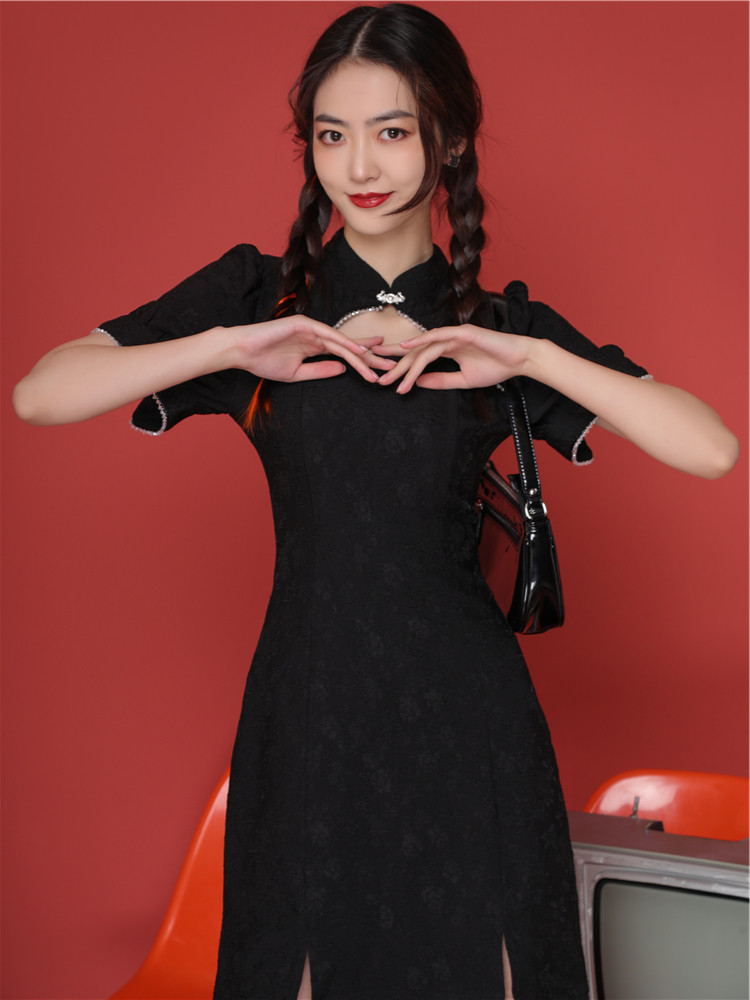Guochao Qipao Women China Wind Black Improved Version Foreign Dress Young Girl Fashion Little Subtemperament To Be Slim