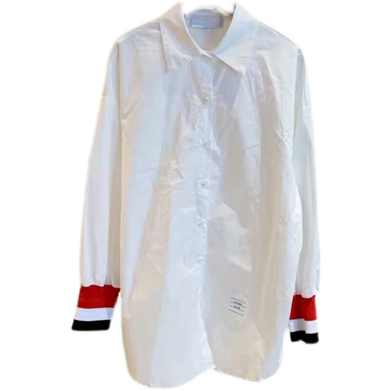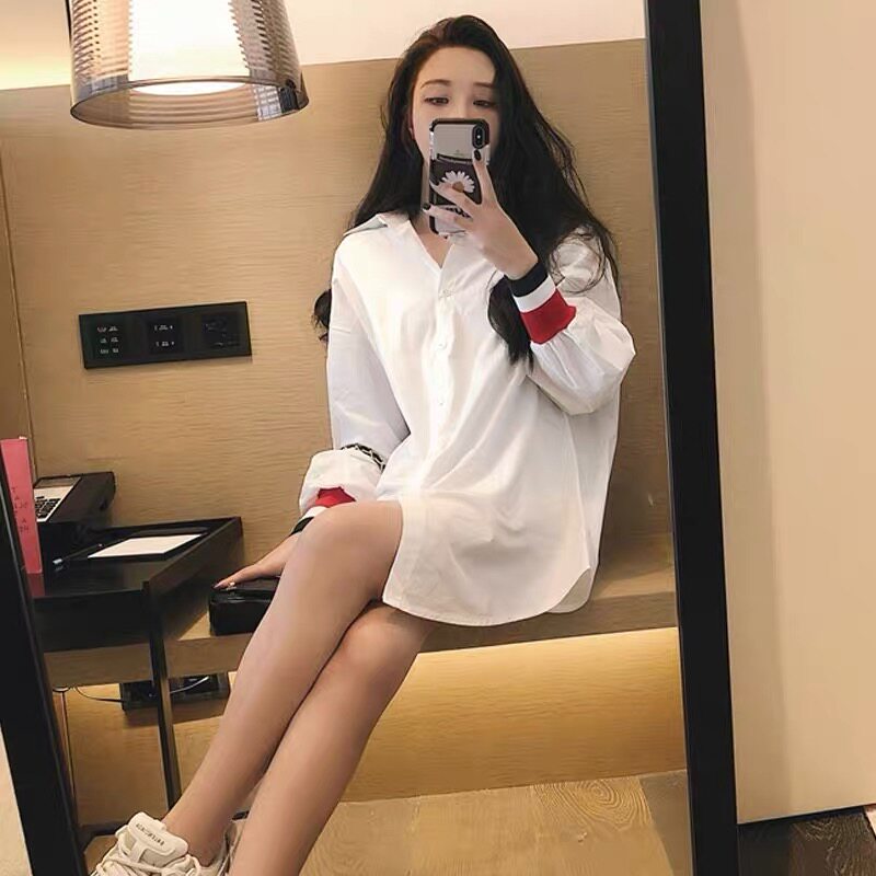 Hong Kong counter 2021 spring and autumn cotton loose BF white shirt women's long version of academy style color color shirt cardigan