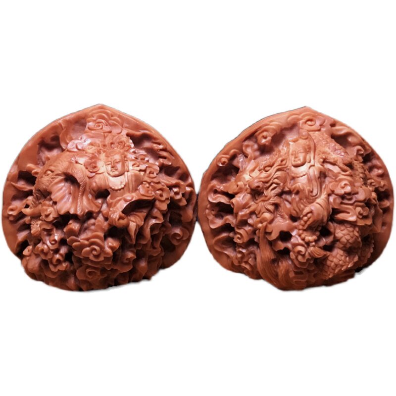 Big Four Faces Bodhisattva Su Nan Workers Pure Hand Text Playing Walnut Engraving Handlebar Piece Ball Two Double Dragon Drama Pearl White Lion Subhead