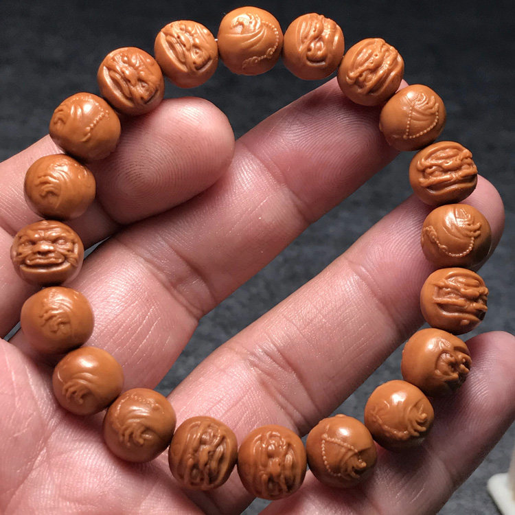 Boutique Damo Pepperian Monkey Head Walnut Engraving Near Positive Round Small Seed Handmade String of Pearl Buddha beads Men and women