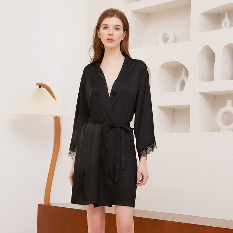 Rethinking Sleepwear Spring Summer Season Light Sexy Superior Black Bath Robes Morning Gown Lace Girl Lace Long Sleeve Sleeping Robe
