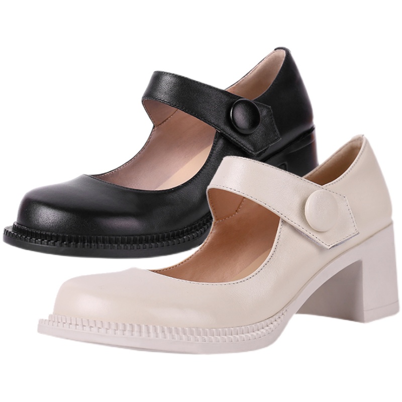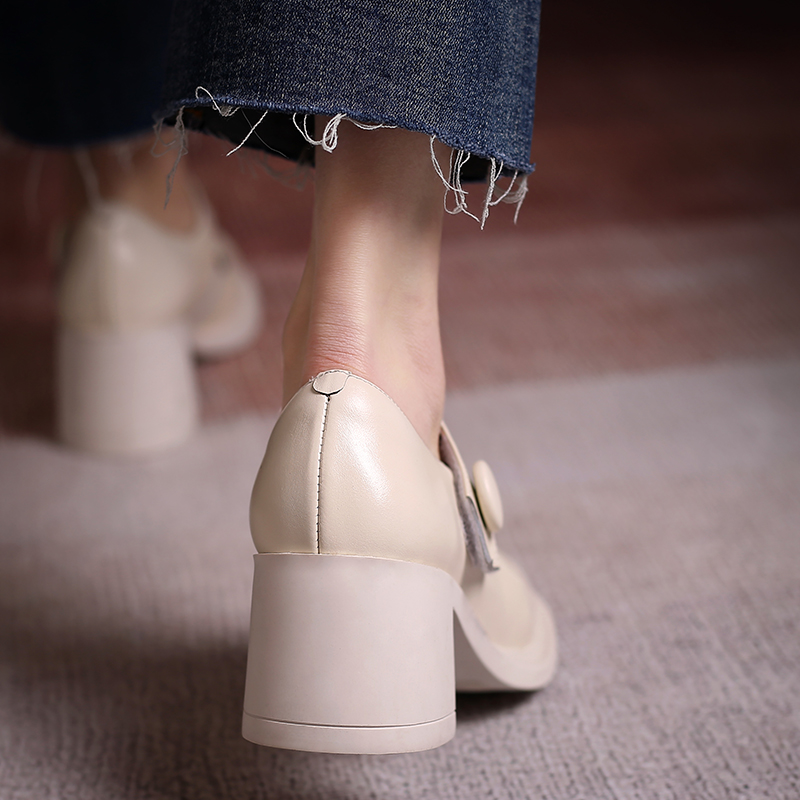 Strange Shu Millet ~ Coarse Heel Rice White Mary Rare Shoes Single Shoes Woman Jk Retro High Heel Heels Small Leather Shoes Doll Shoes