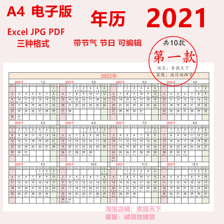 2022 calendar year Calendar 2022 Calendar of calendars Excel Editable A4 Photo year-round calendar JPG electronic version