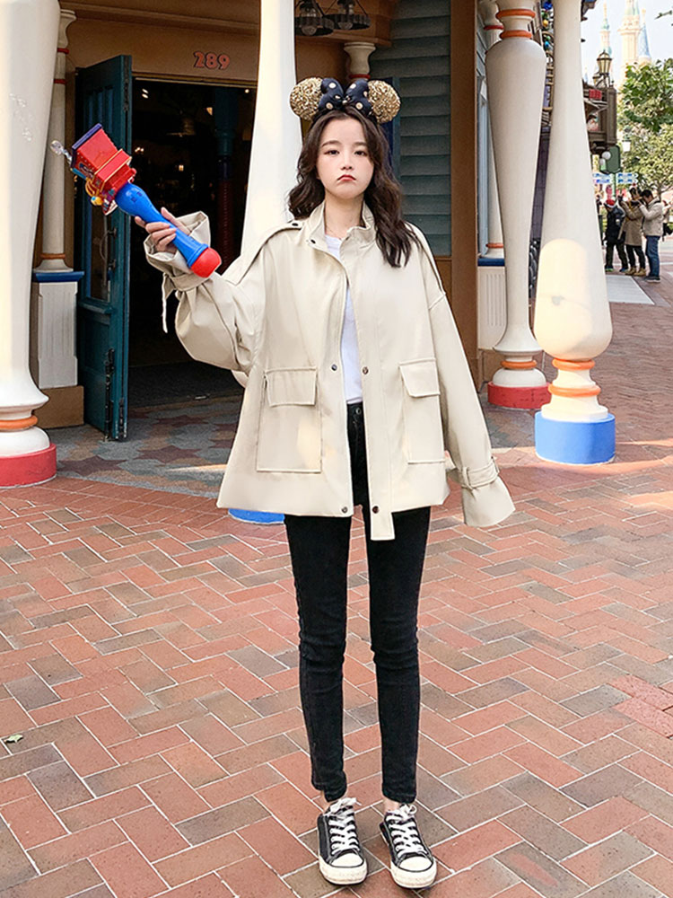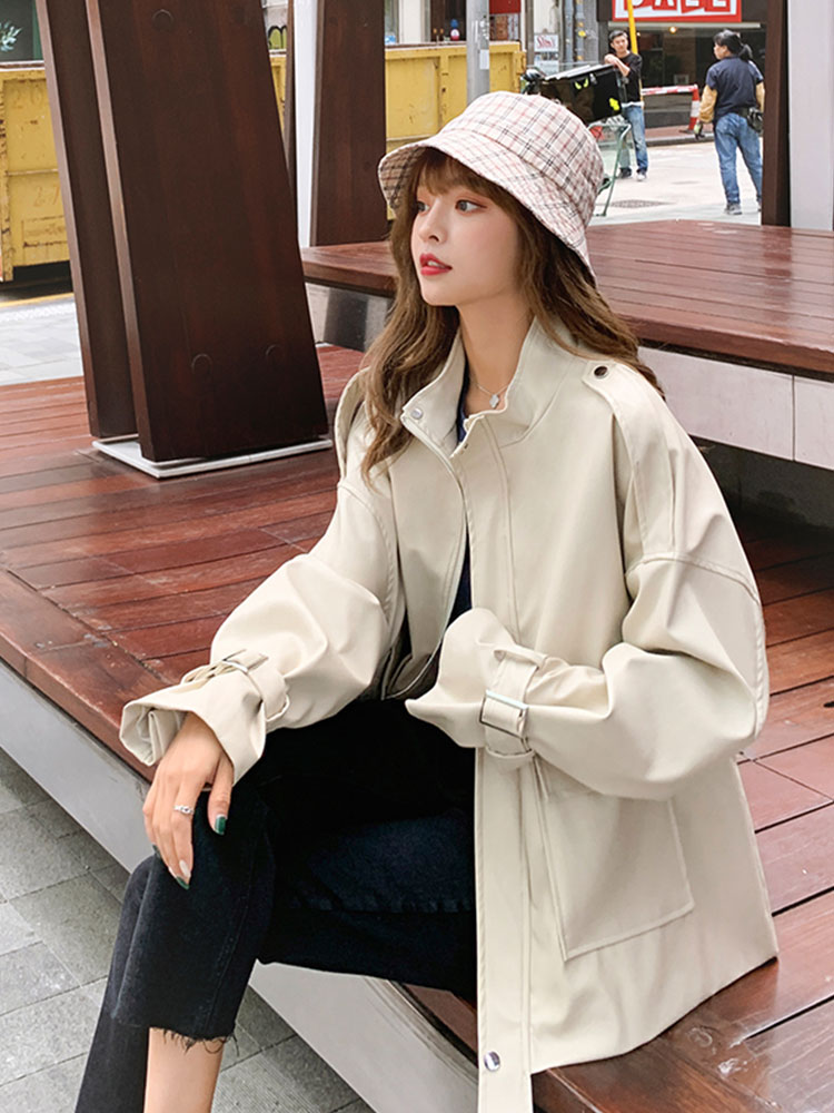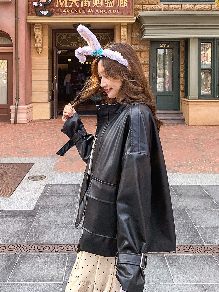Leather jacket female short section small man spring and autumn 2021 new fried street short loose all-match pu stand-up collar jacket