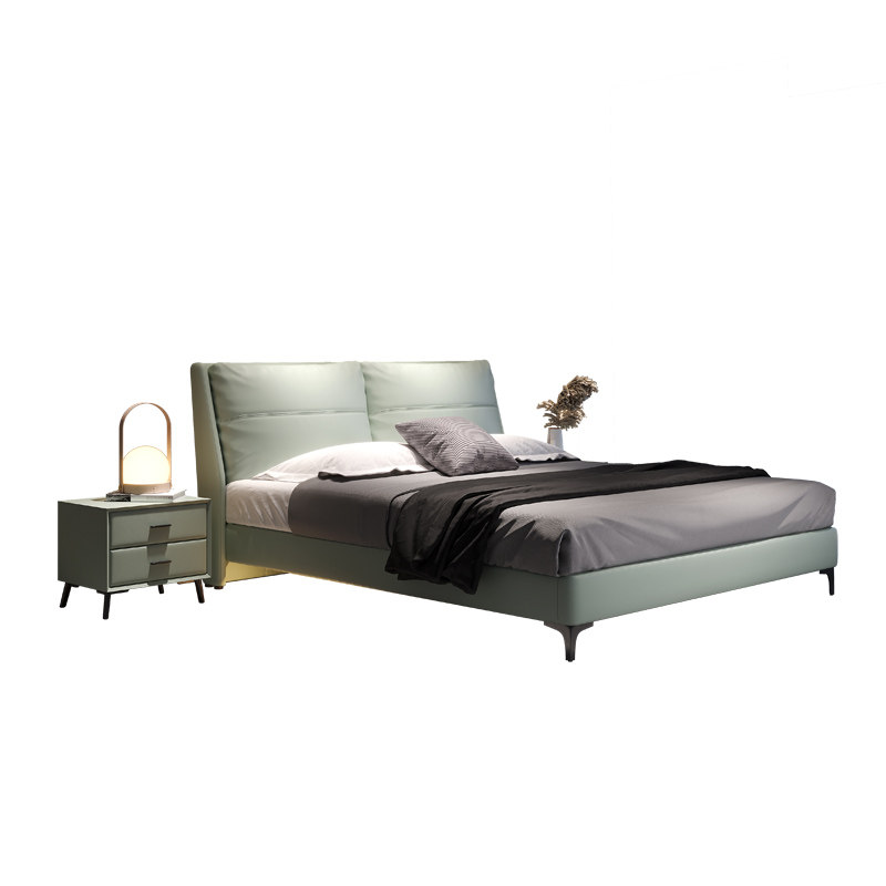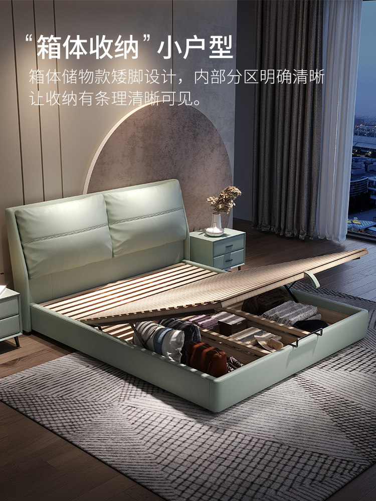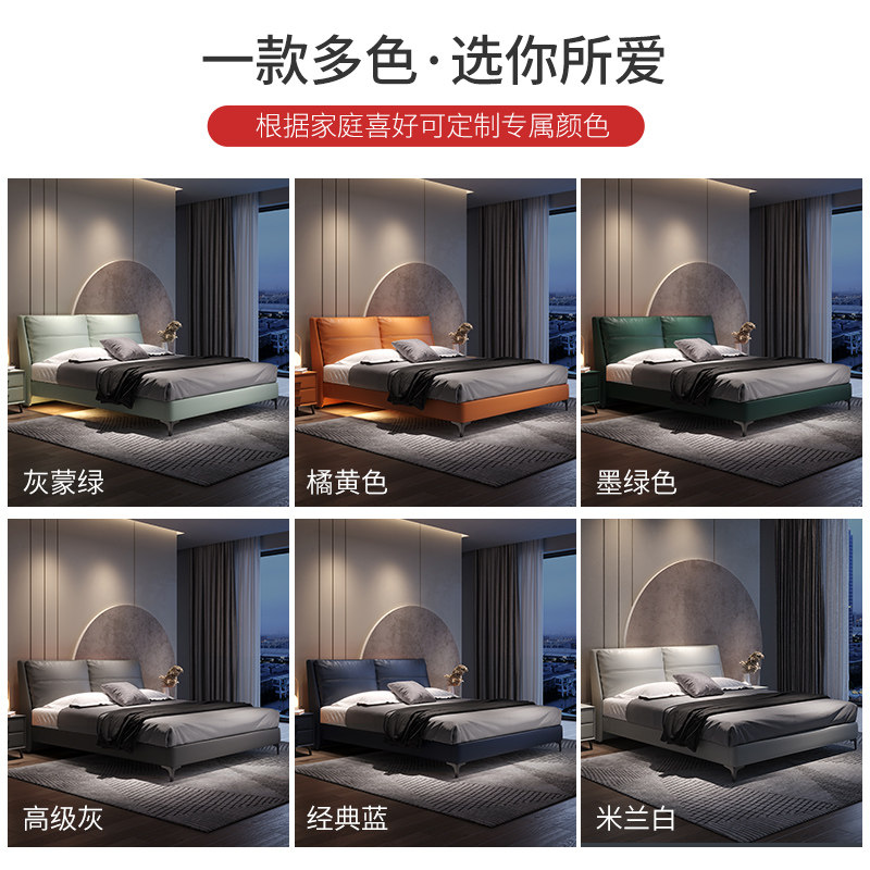 Italian minimalist bed, light luxury, modern leather bed, leather bed, wind bed, simple Nordic double bed, 18 meters, wedding bed, master bedroom