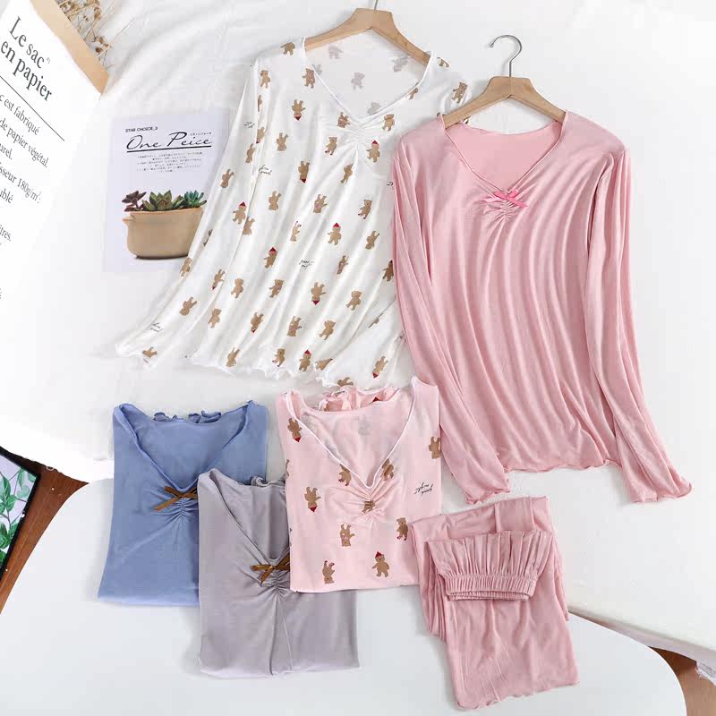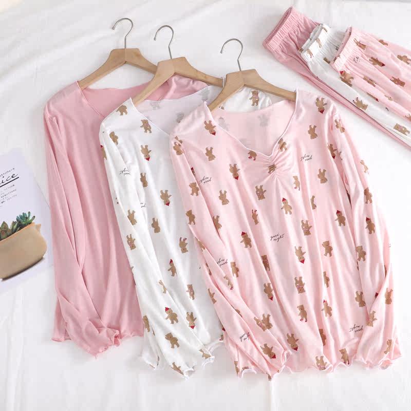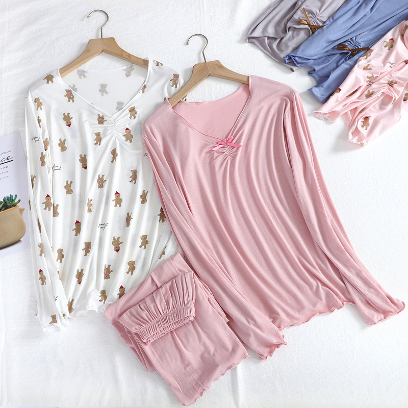Modale Cotton Pyjamas Woman Long Sleeve Spring Autumn Loose Large Size Code Day Ensemble Head Summer Home Conserved Cartoon Lingerie Yoga Clothes
