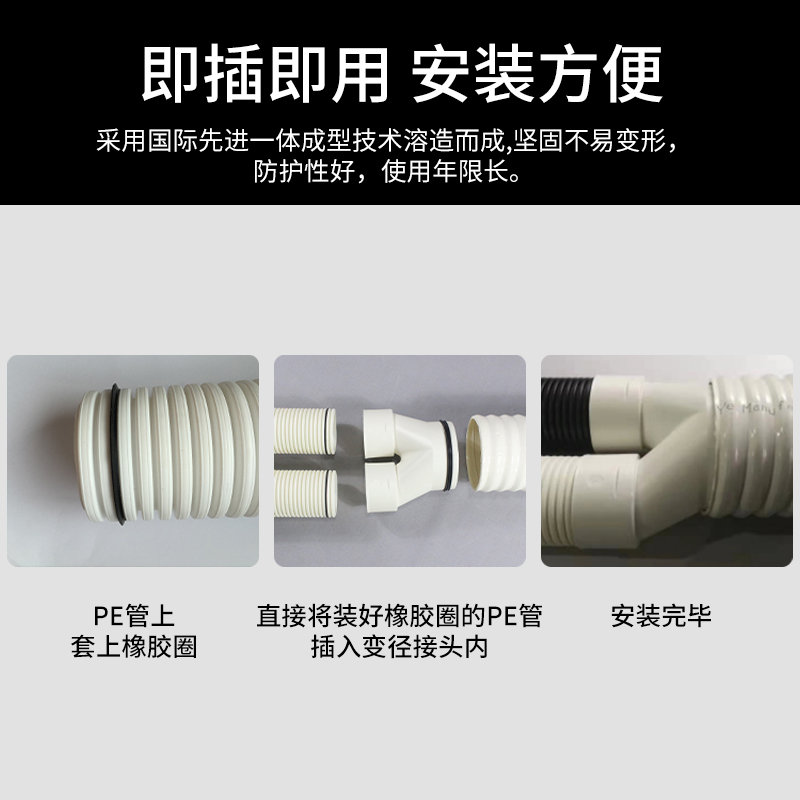 Pipe accessories PE pipe 110 90 75 dip insert fresh air conversion joints