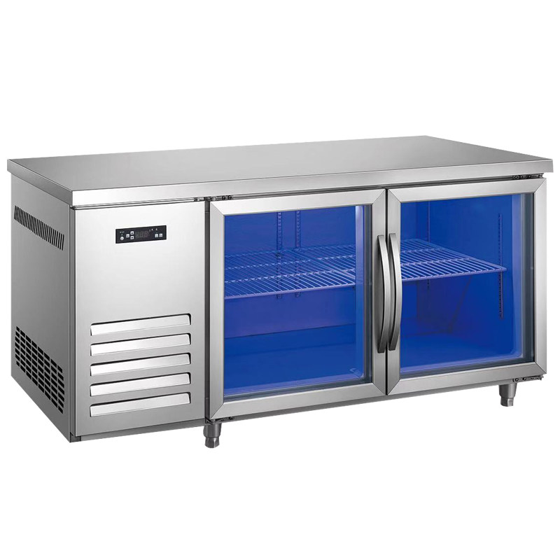 Customized commercial air-cooled refrigeration freezer workbench fresh-keeping blue light glass door refrigerator kitchen milk tea shop operation table