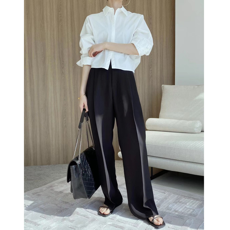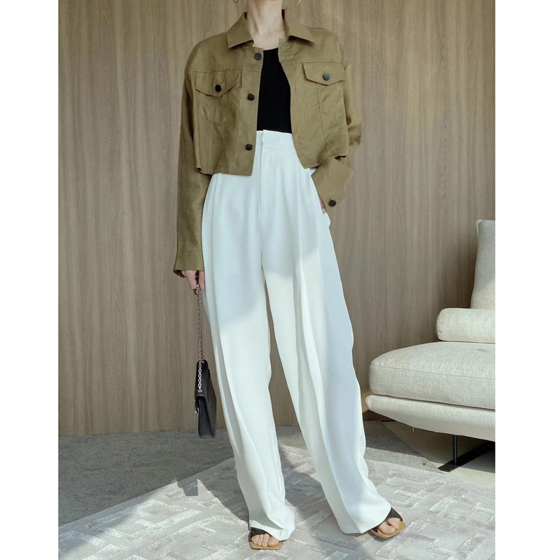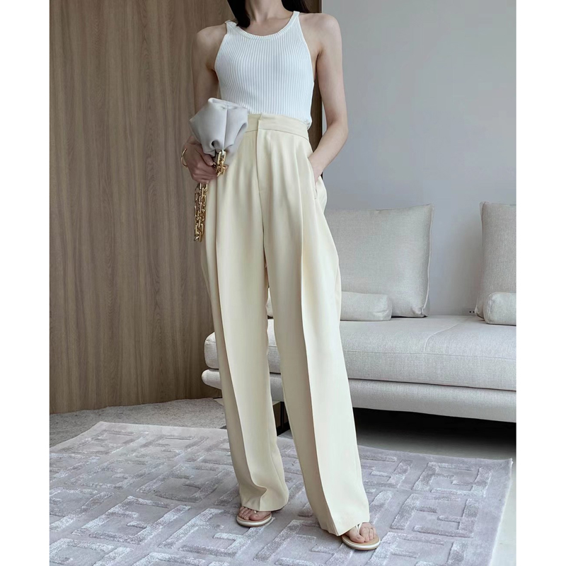 2021SS Spring Summer New High Waist Classic 100 Hitch Suit Casual Pants Woman Covety Broadlegged Panty Pants Thin Tug Pants