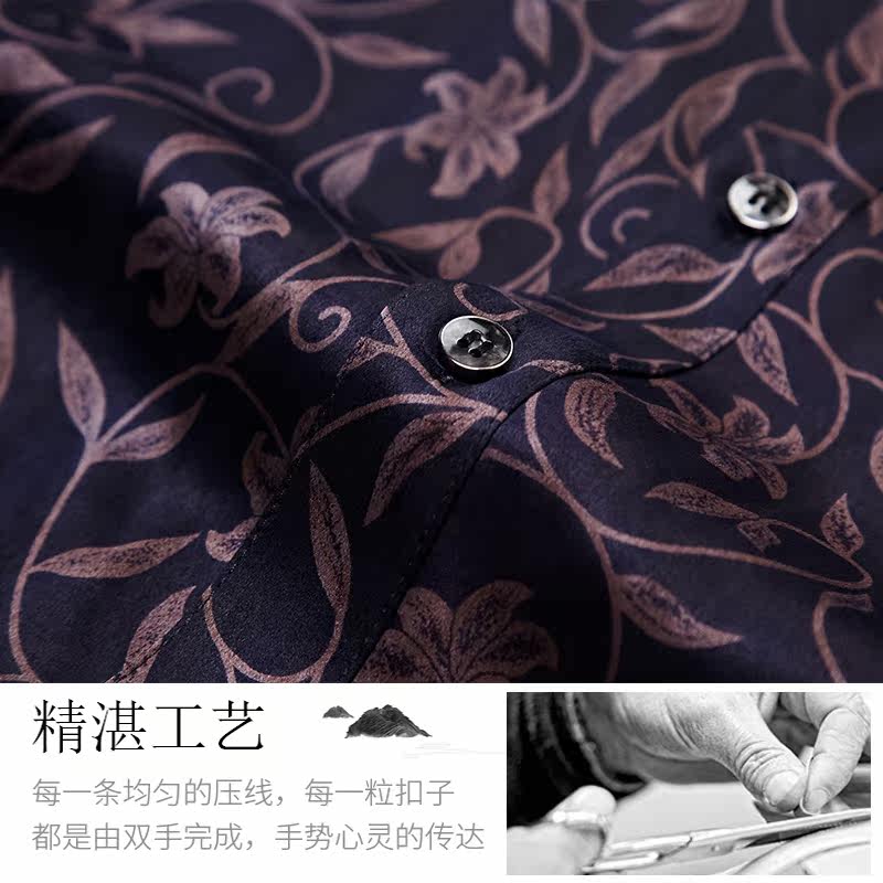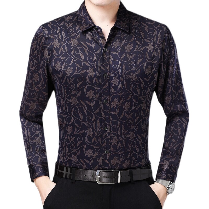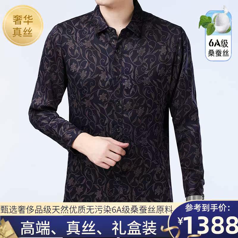 2021 Ordos city spring mulberry silk long sleeve shirt for men middle-aged real silk printed daddy business shirt