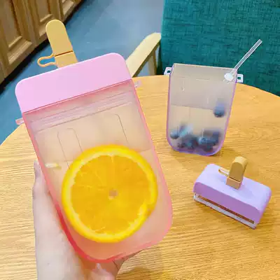 Net red Popsicle-pink plastic suction tube Cup (300ml) Net red Popsicle-blue plastic suction tube Cup (300ml) Net red Popsicle-yellow plastic suction tube Cup (300ml)