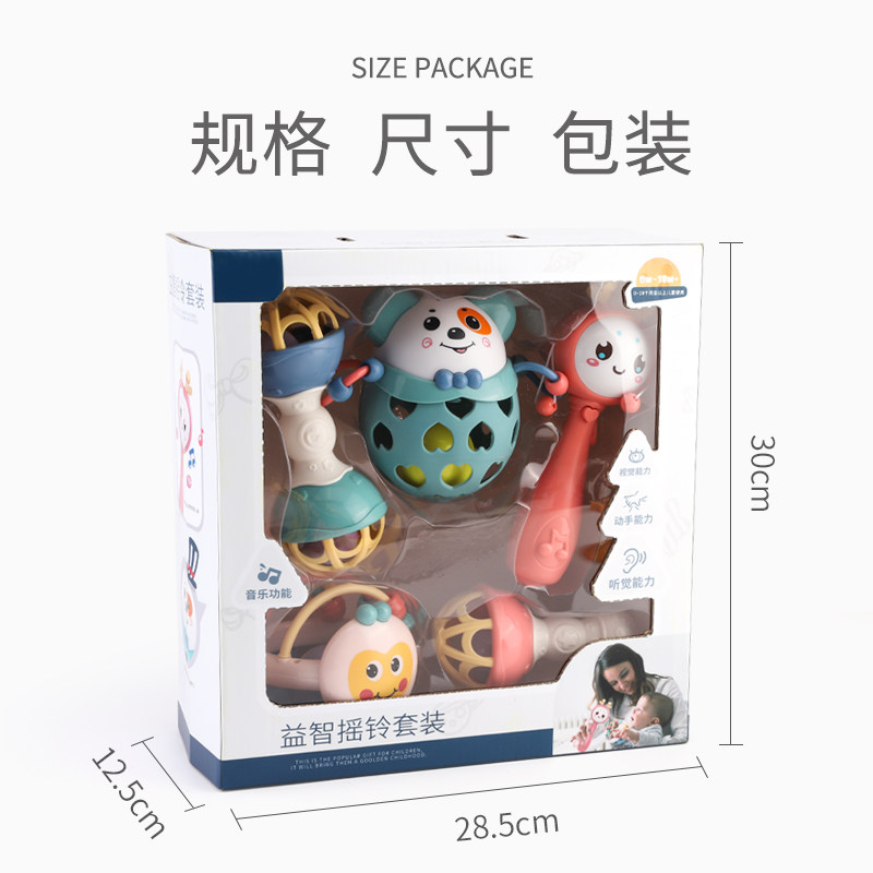 Rattle gift box with 5 pieces (soft rubber rattle) rattle stick) early education rattle)