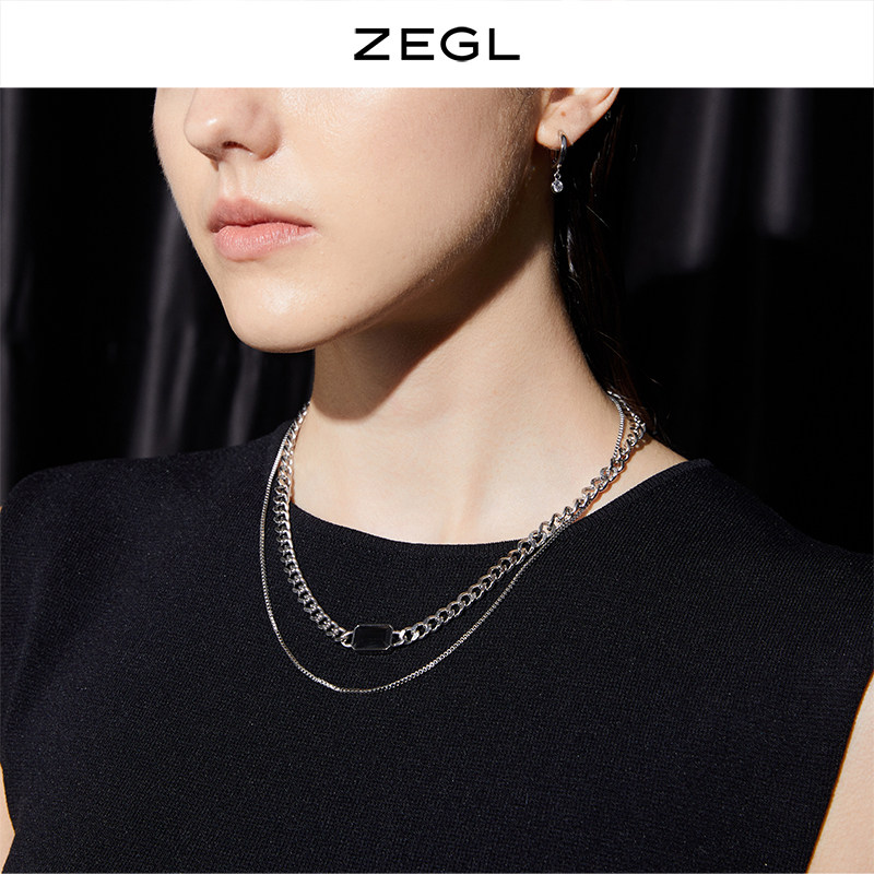 ZEGL trendy cool double functional necklace Female niche design hip-hop retro cold wind Cuba chain Net red clavicle chain