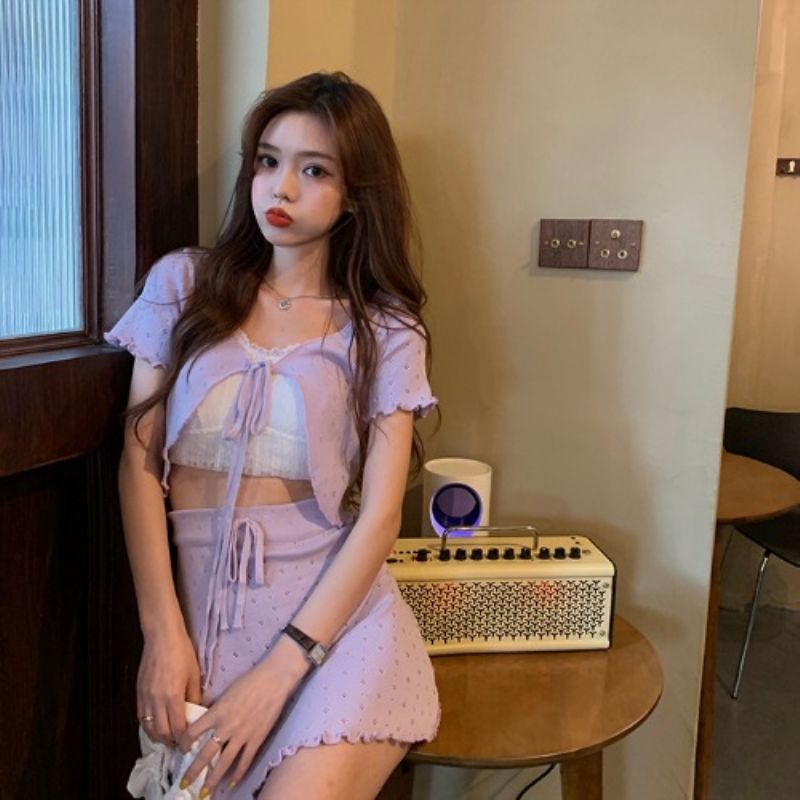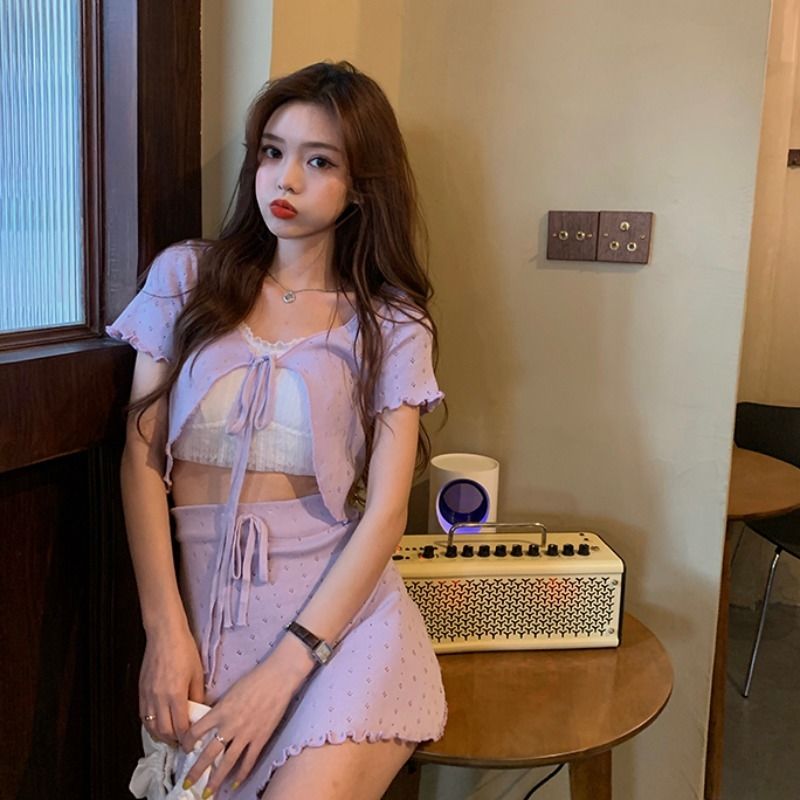 ins Korean style fashion suit women summer style two piece short sleeve cardigan coat top western style package hip skirt skirt