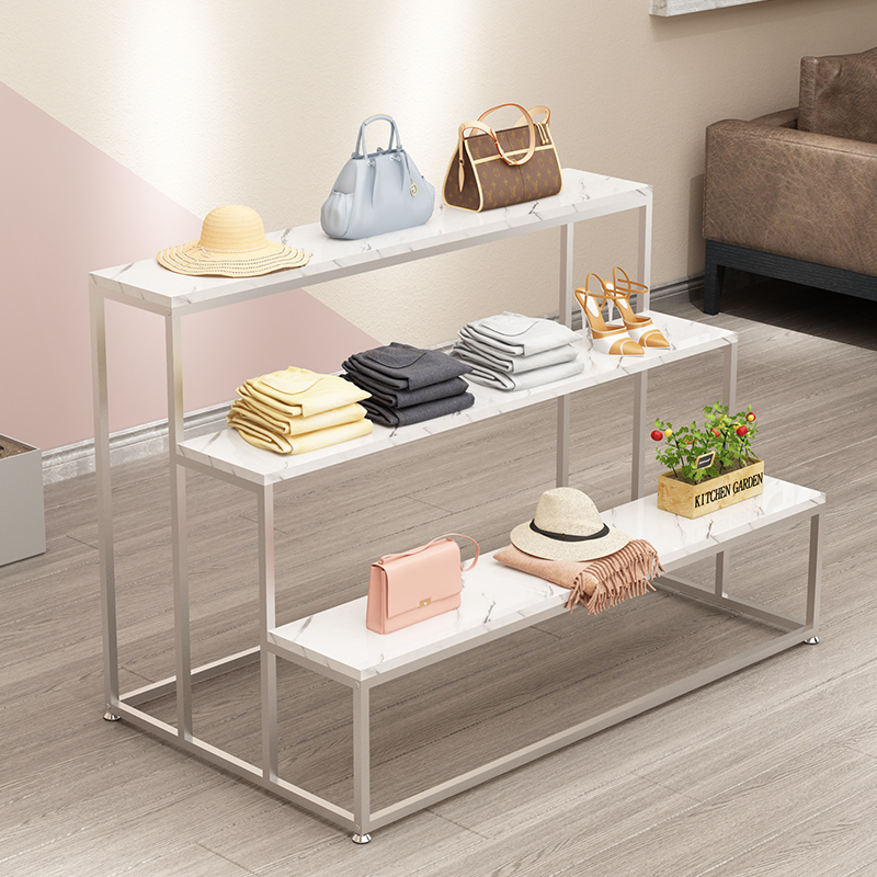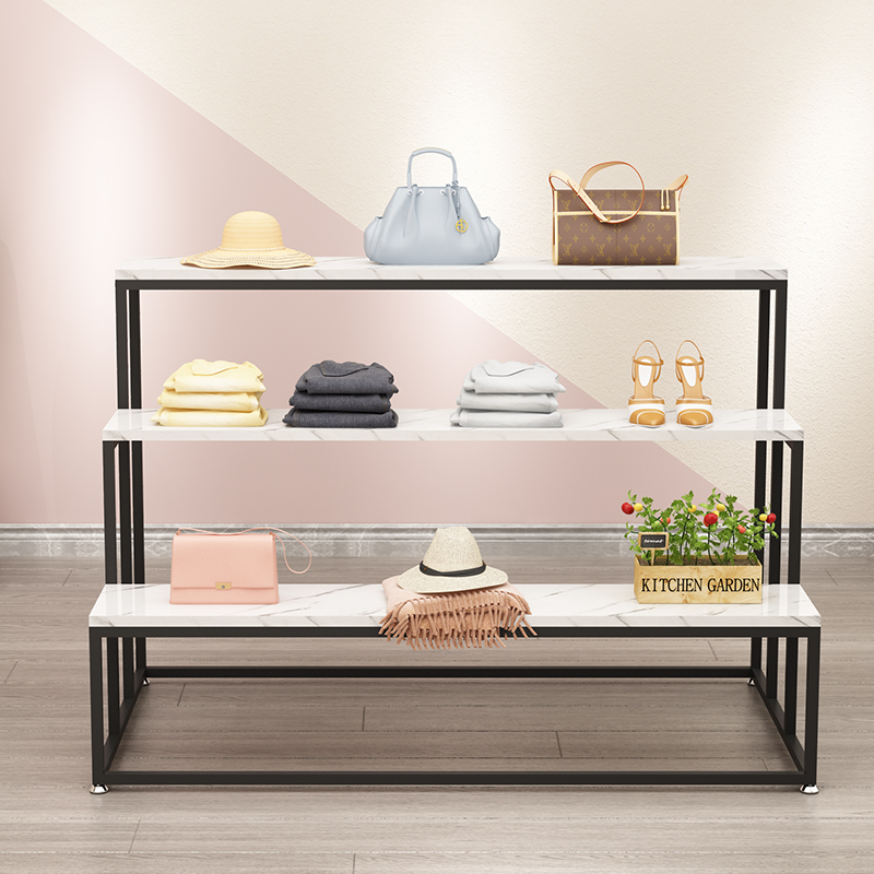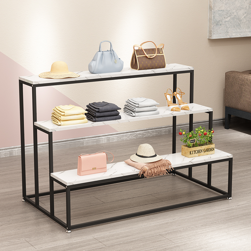 Clothing Store Light Extravagant Iron Art Exhibition Racks high and low three-layer shelving shoes Shop Package Flowing Water Table Shelf Booth