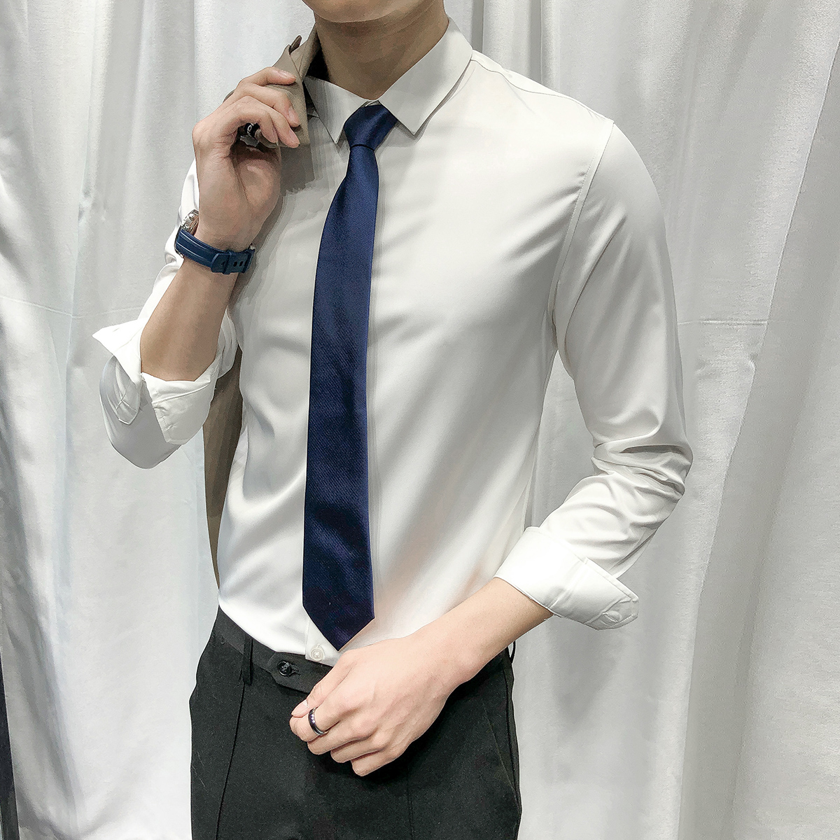 Pure white shirt men's long-sleeved spring and autumn high-end design sense niche casual trendy ins free ironing business shirt inch