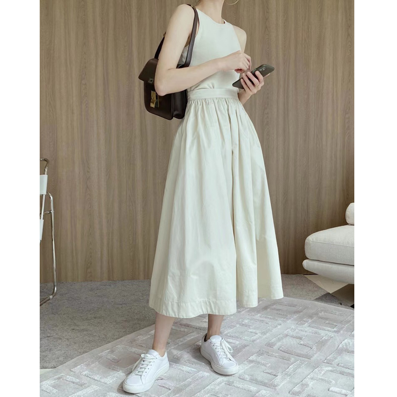 Spring and Summer New Heavy Industry French High Waist Temperament Umbrella Skirt Elegant Mid-Length Version Cotton Large Swing Skirt Thin Skirt