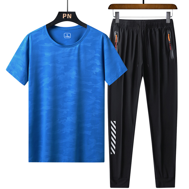 Shengtianlong ice silk quick-drying men's T-shirt summer short-sleeved sports and leisure sports suit men's outdoor long pants men