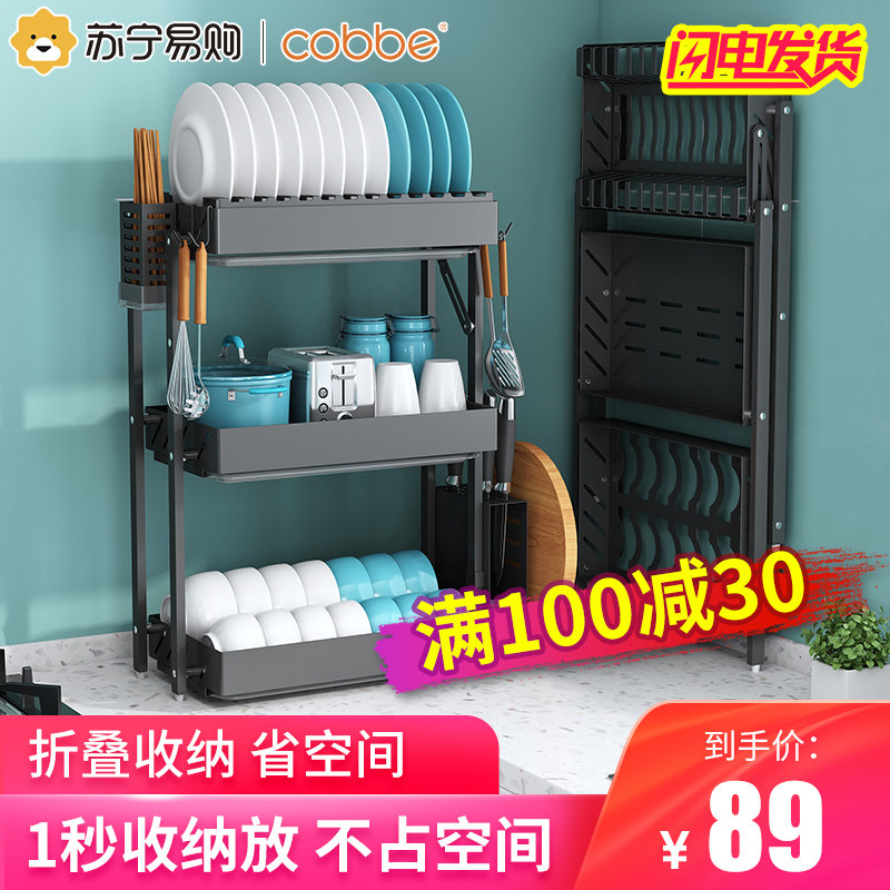 (Cabe 363) kitchen shelf dishes storage rack multifunctional foldable bowl chopsticks put bowl rack drain rack