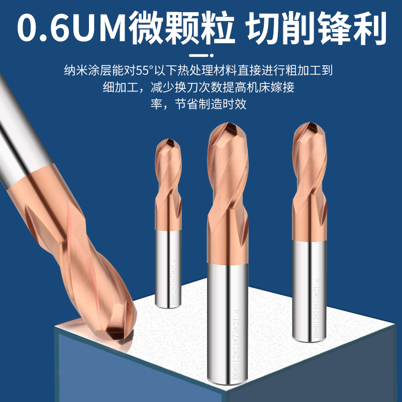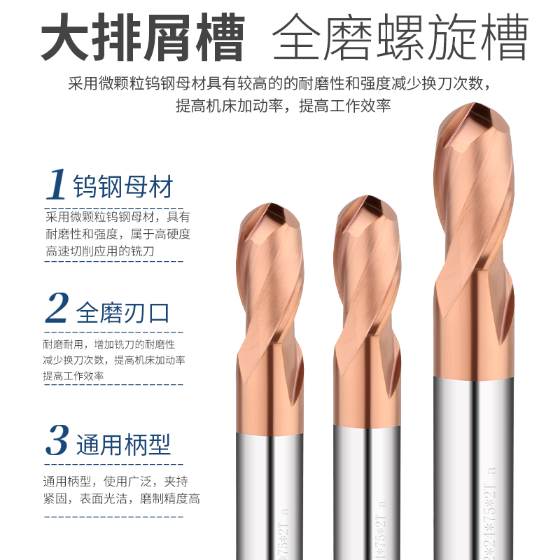 55 degrees 2-edge spherical tungsten steel milling cutter head type milling cutter integral hard alloy ball cutter R knife numerical control cutter CNC