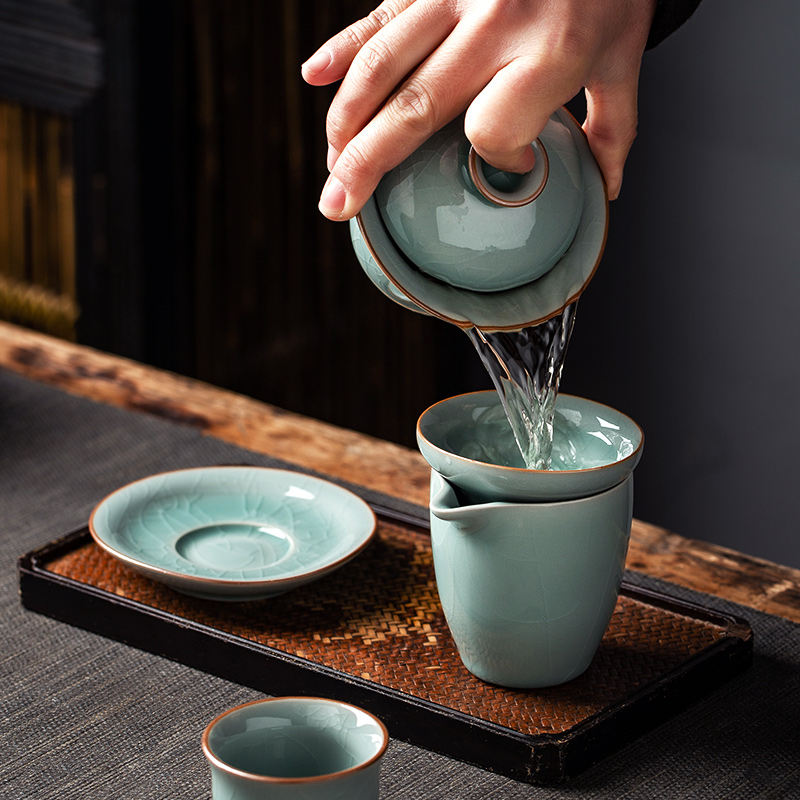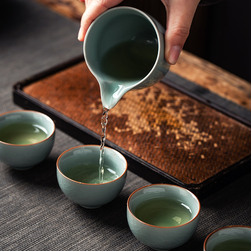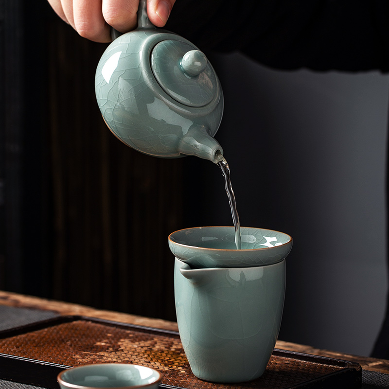 Jingdezhen Celadon ice crack glaze set Kung Fu tea set Chinese office living room premium tea pot Teacup