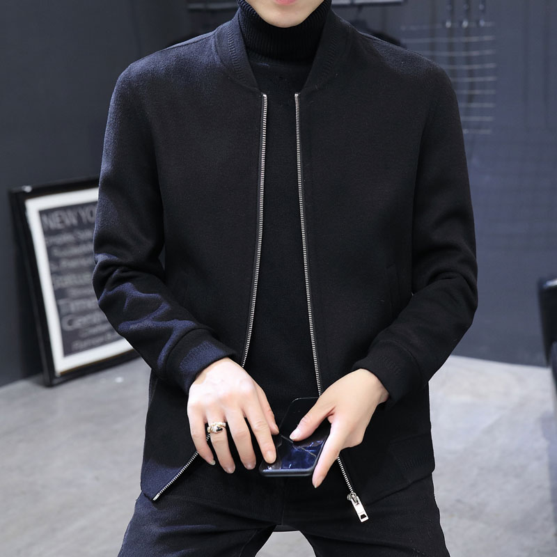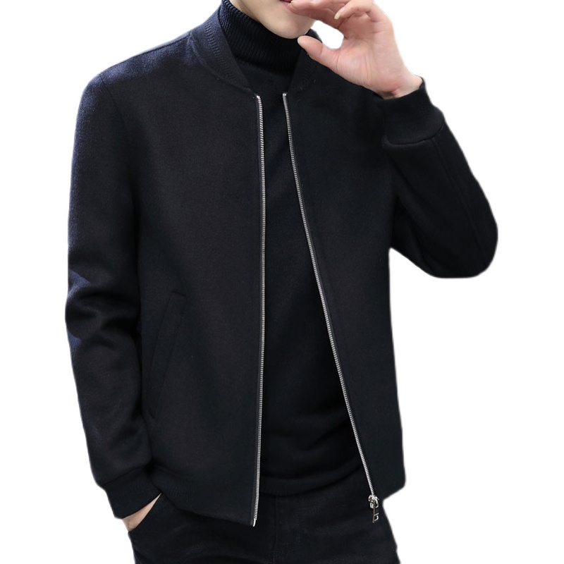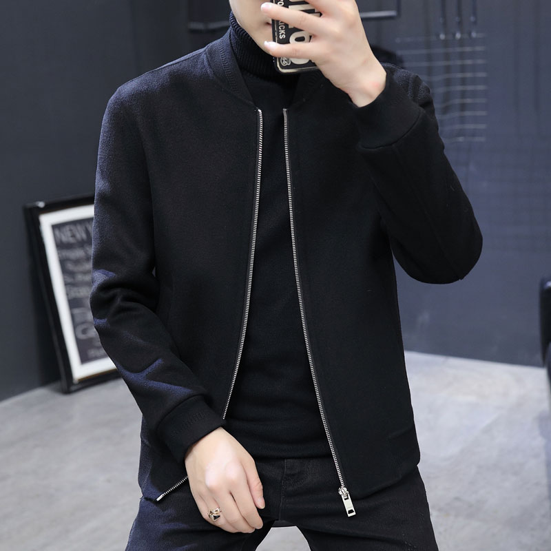 Light extravagant double face cashmere big coat man 2021 spring autumn short style baseball suit jacket pure color Korean version loose casual jacket
