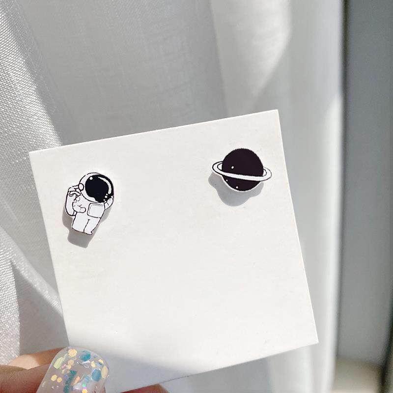 Asymmetrical Astronaut Magnet Ear Clip Without Earhole Female Brief small student Magnet Ear Needle Clips Earrings