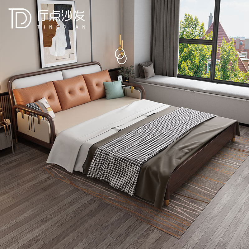 Folding sofa bed dual-purpose sitting and sleeping small apartment new Chinese style living room double storage multi-functional simple solid wood sofa