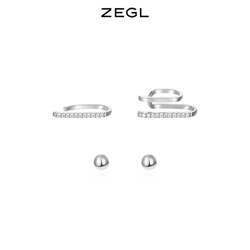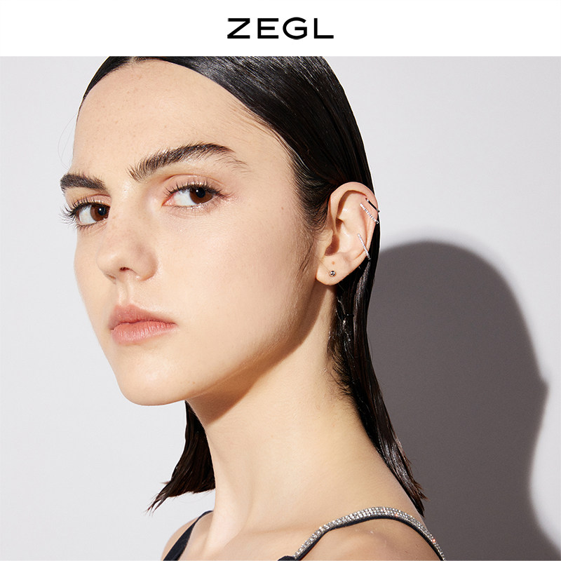 ZEGL925 sterling silver simple line ear clip temperament small stud ins Wind ear clip earrings asymmetric earring