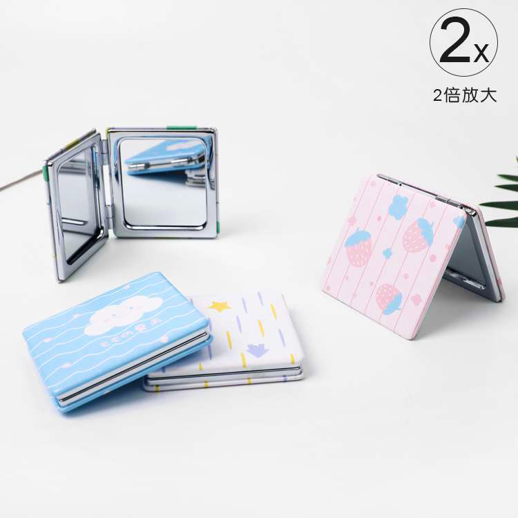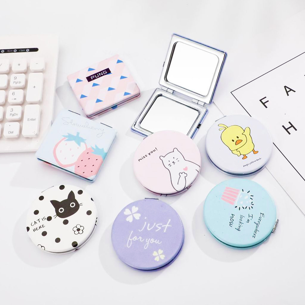 Take a small mirror with girls with portable double-sided makeup mirror folding cute mini in bag