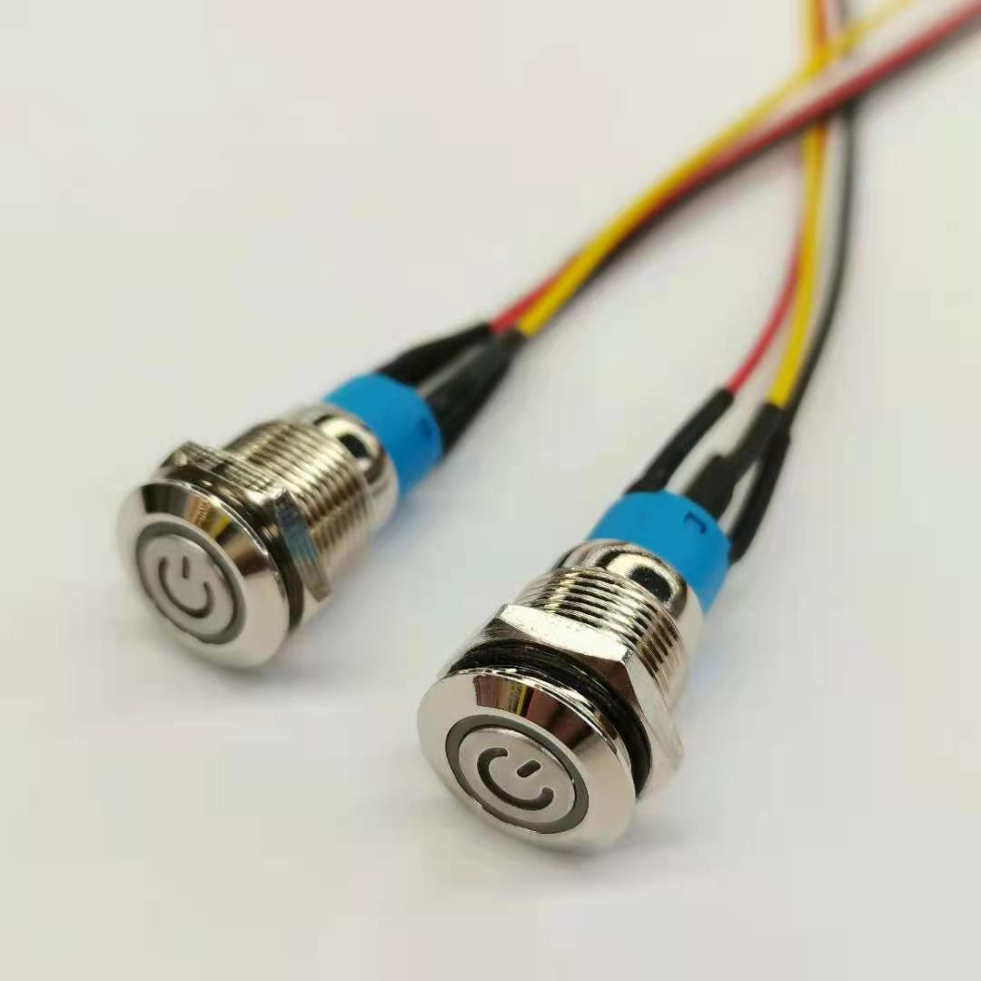 12mm with lamp with lock metal computer button waterproof switch silver contact point 5v12v24v connected 2.54 electronic wire