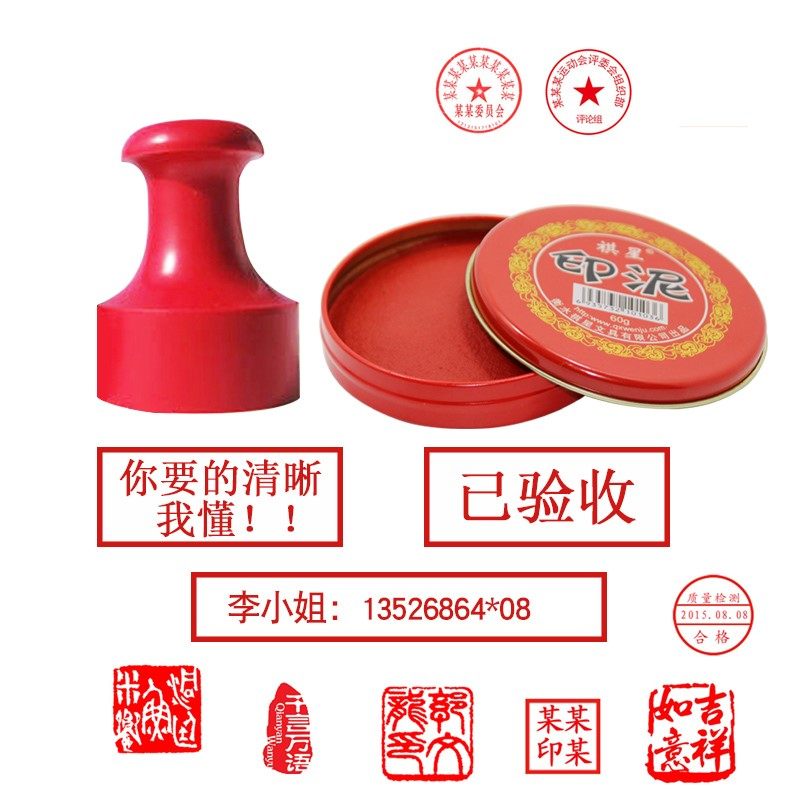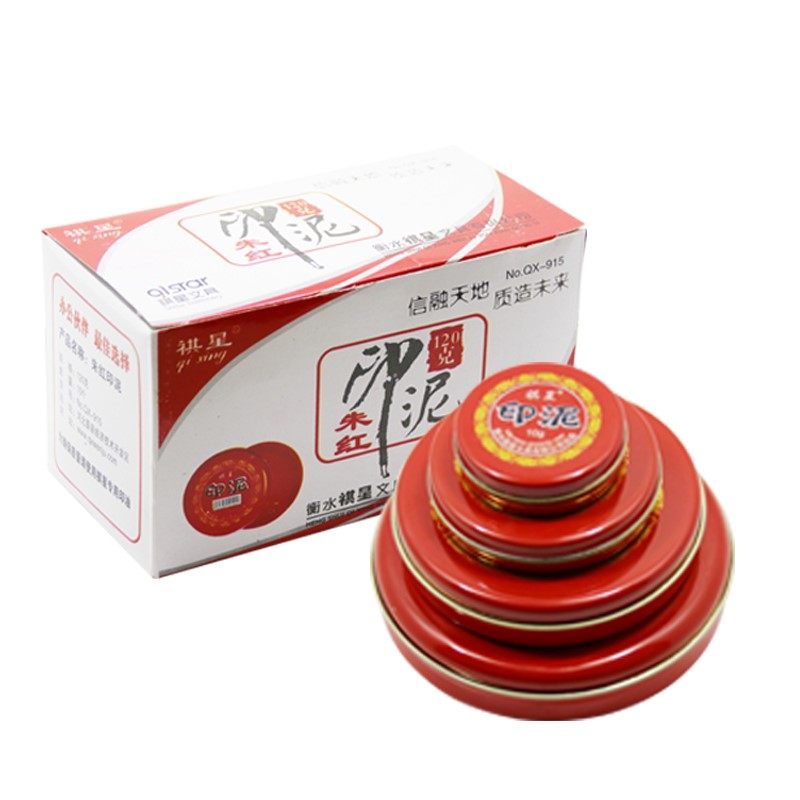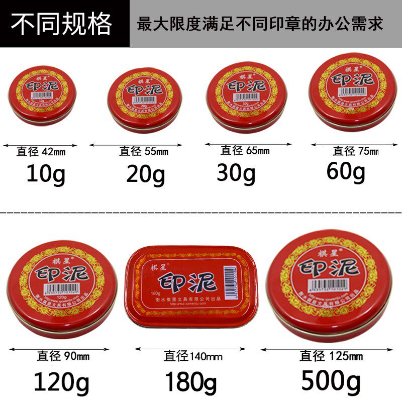 Qixing printing mud cinnabar calligraphy and painting vermilion bank seal seal red round iron box printing pad Indonesia fast-drying financial press handprint 500g gram large printing pad press handprint leaving fingerprint small printing pad