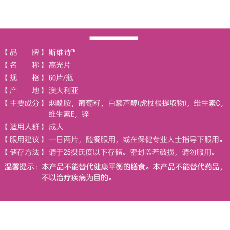Wang Fei fei with the same Australian Swisse high light sheet 60 grain grape seed niacinamide white veratrol dark and anti-first-old