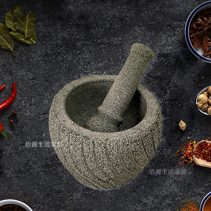Natural Green Stone Garlic Mortar Manual Mashing Garlic Seminator Domestic Grinding Machine For Cohorts Old-fashioned Stone Mortar SAMPAN Ramming Pot