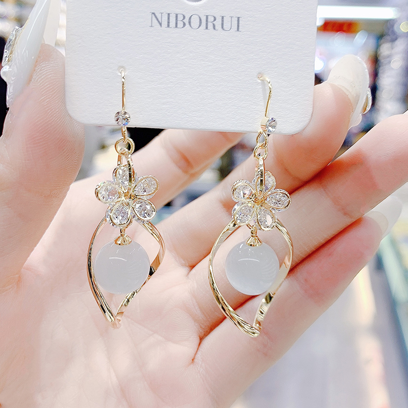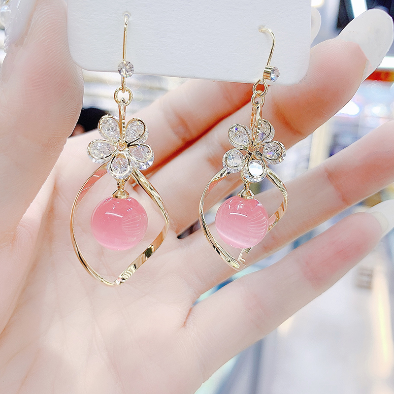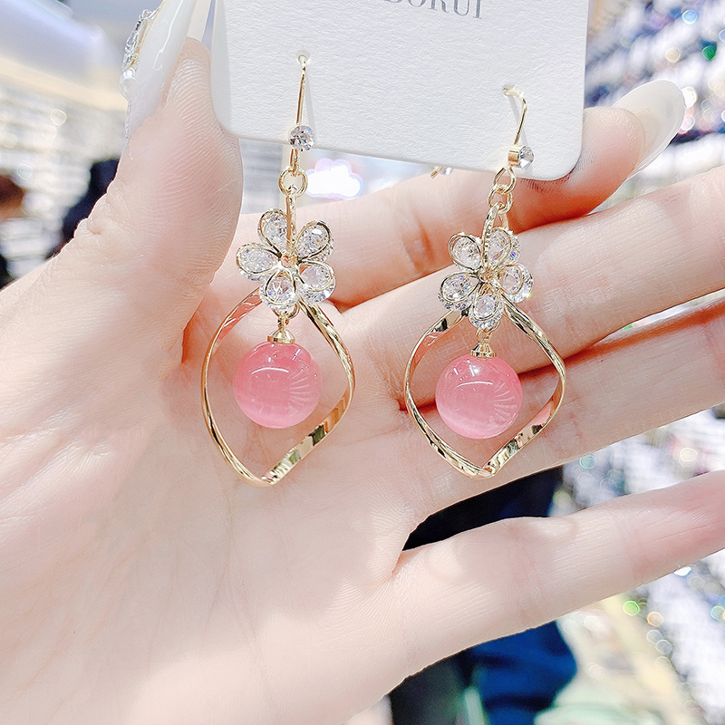 South Korea's red earrings female new cat eye temperament earhook in 2023 senior zirconic flower ear tide