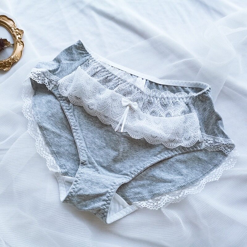 Hitong large size underwear fat mm high waist display slim Japanese ensemble pure cotton comfort underwear butterfly knot lace stitch triangular pants