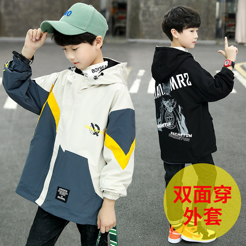 Boy jacket Spring models 2022 new foreign Piers 10-15 CUHK children medium long version of wind clothes Double face wearing boy spring clothing