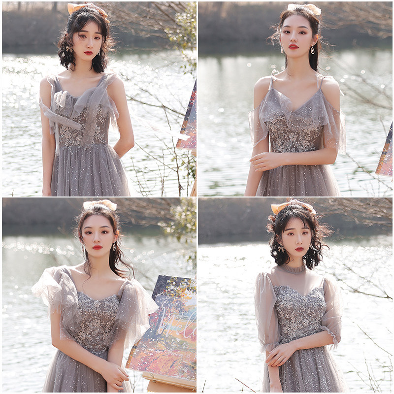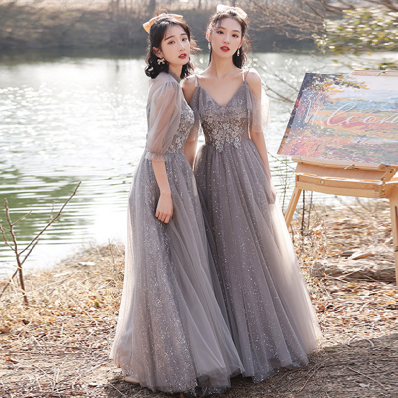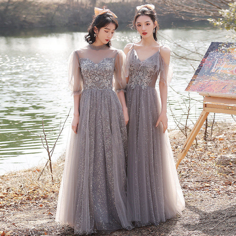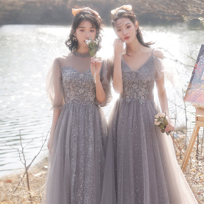 Grey bridesmaid dress 2023 new fairy temperament long bridesmaid sister dress wedding simple atmospheric girl dress