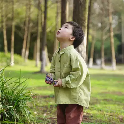 Chenchen dad boys' shirt spring and autumn coat children's cotton color color lapel casual Japanese Korean version of small children's shirt