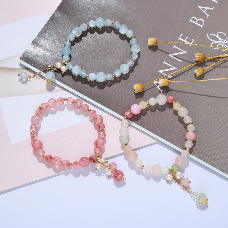 2021 new pink crystal strawberry crystal bracelet fashion girl hand string birthday student gift