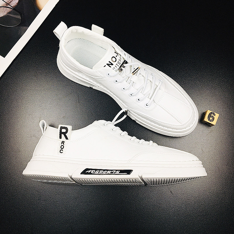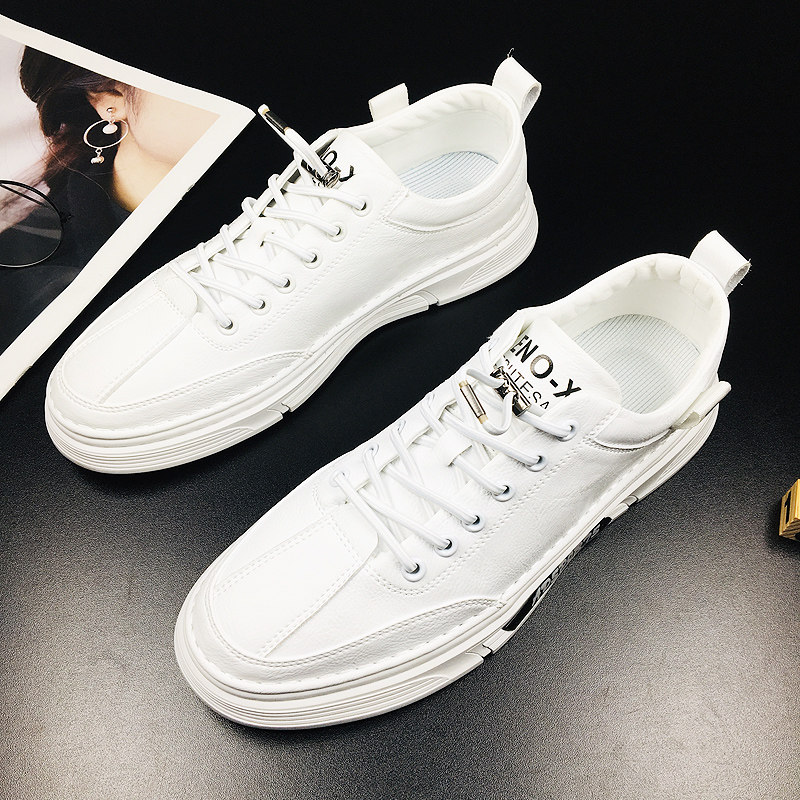 Small white shoes men's all-match 2021 spring new men's shoes trend not lace up lazy casual leather white sneakers