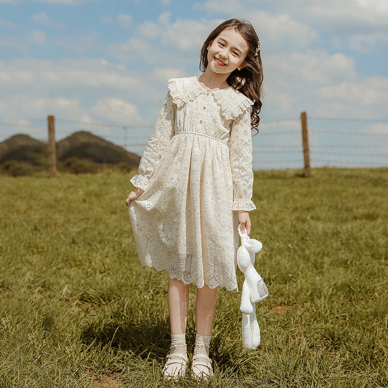 Hong Kong Girl's Spring and Autumn Ocean dress 2022 The new fashion Korean version of the girl lace in the long version of the princess nepotism