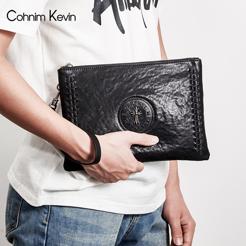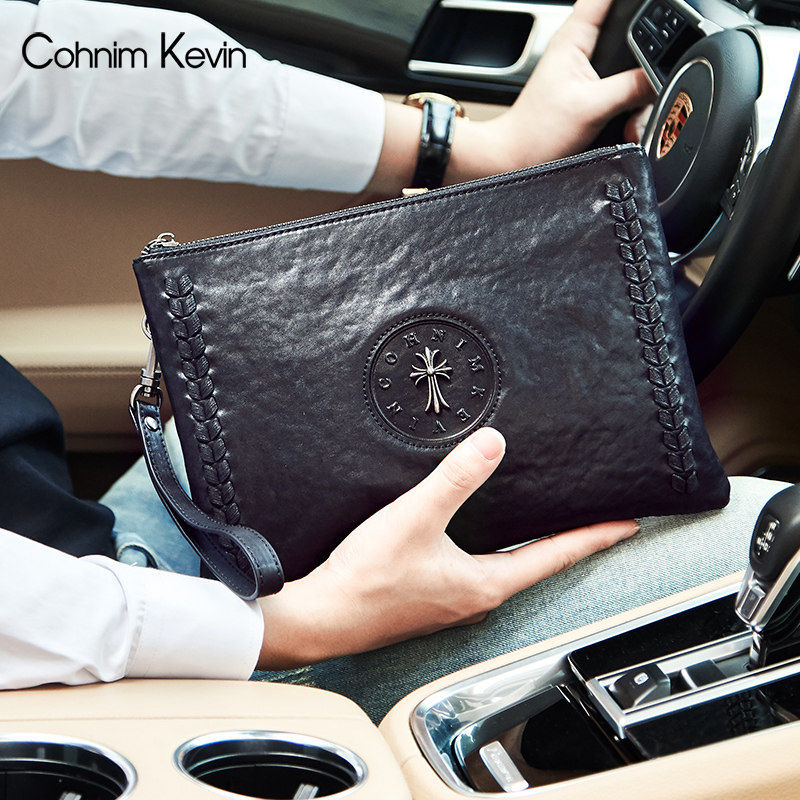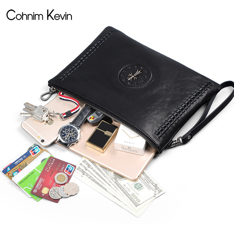 Cohnimkevin Men's Leather Clutch Bag Clip Bag Large Capacity Clutch Bag Shiny Soft Leather Envelope Bag Gift